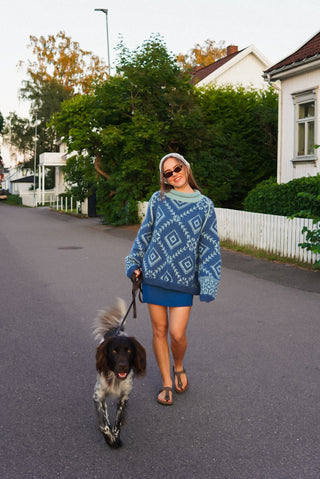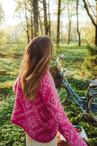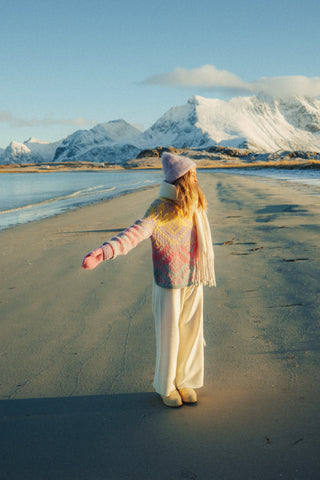 The pieces are inspired by her grandmother's '80s sweaters and named after Helene's two grandmothers and one great-grandmother. All garments in the collection are knitted in Norwegian Lambswool.