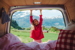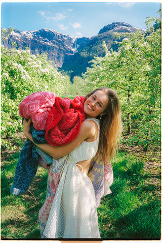 Coming from a non-typical "outdoor family," and lacking hiking gear, Helene rummaged through her grandmother's closet for suitable outdoor clothing. There, she found old '80s wool sweaters and immediately fell in love with the colorful garments.
