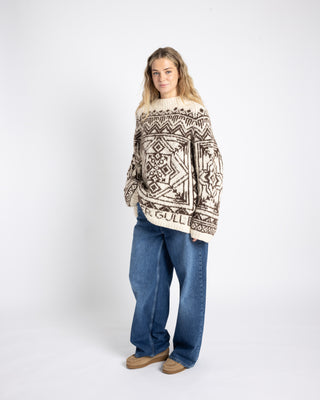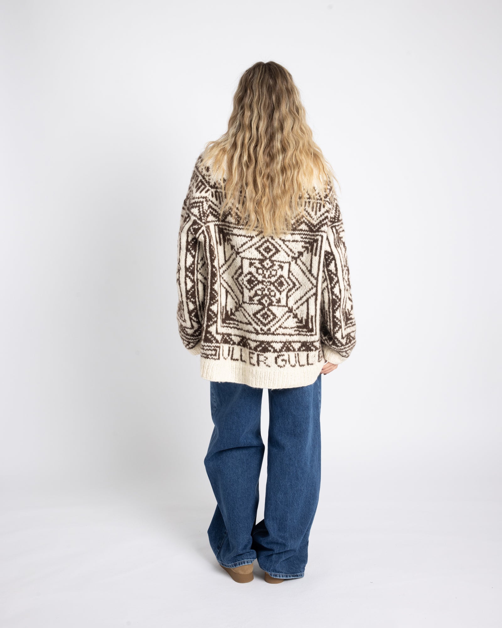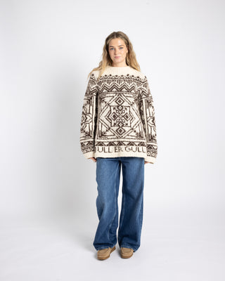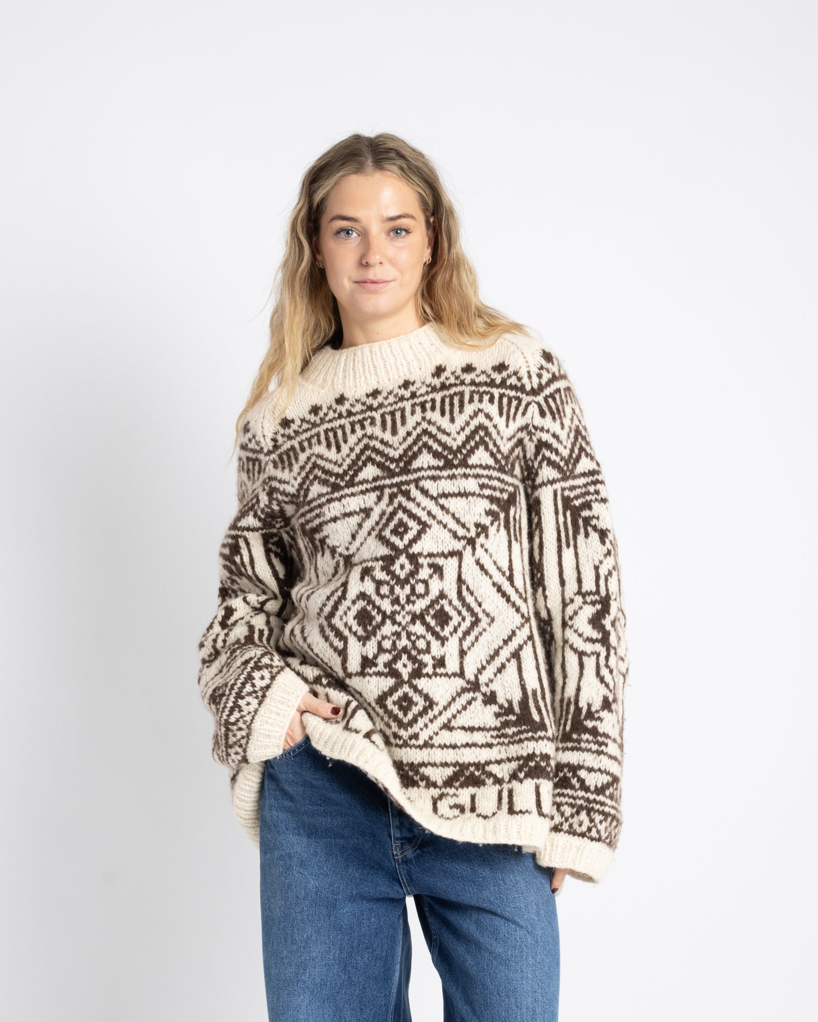 Ull er gull means wool is gold and is a richly patterned sweater that highlights our message: Norwegian wool truly is gold! It is knitted in Myk Norwegian Lambswool with a unique pattern that carries an important message. A simple, loose-fitting sweater with that little something extra!