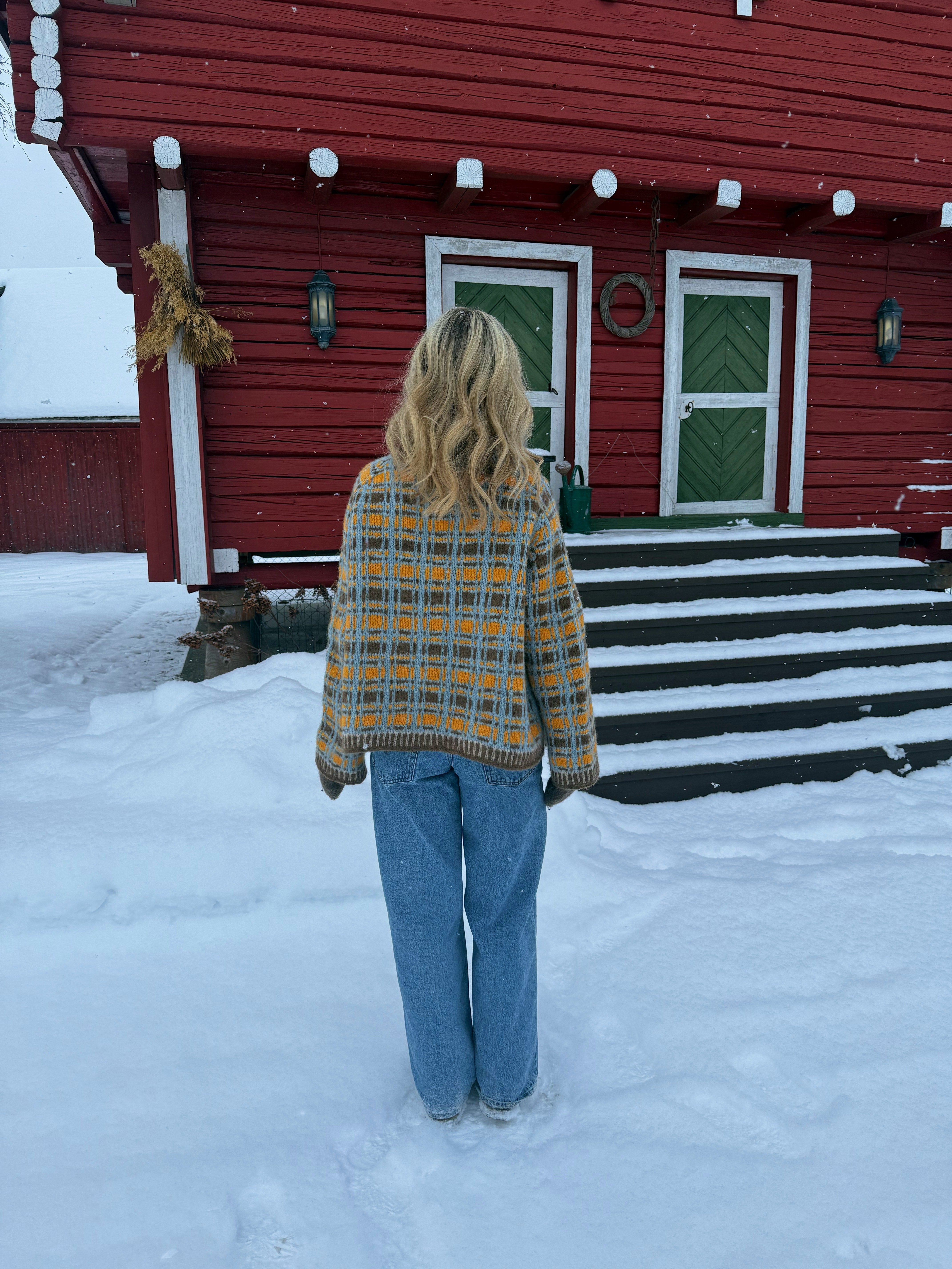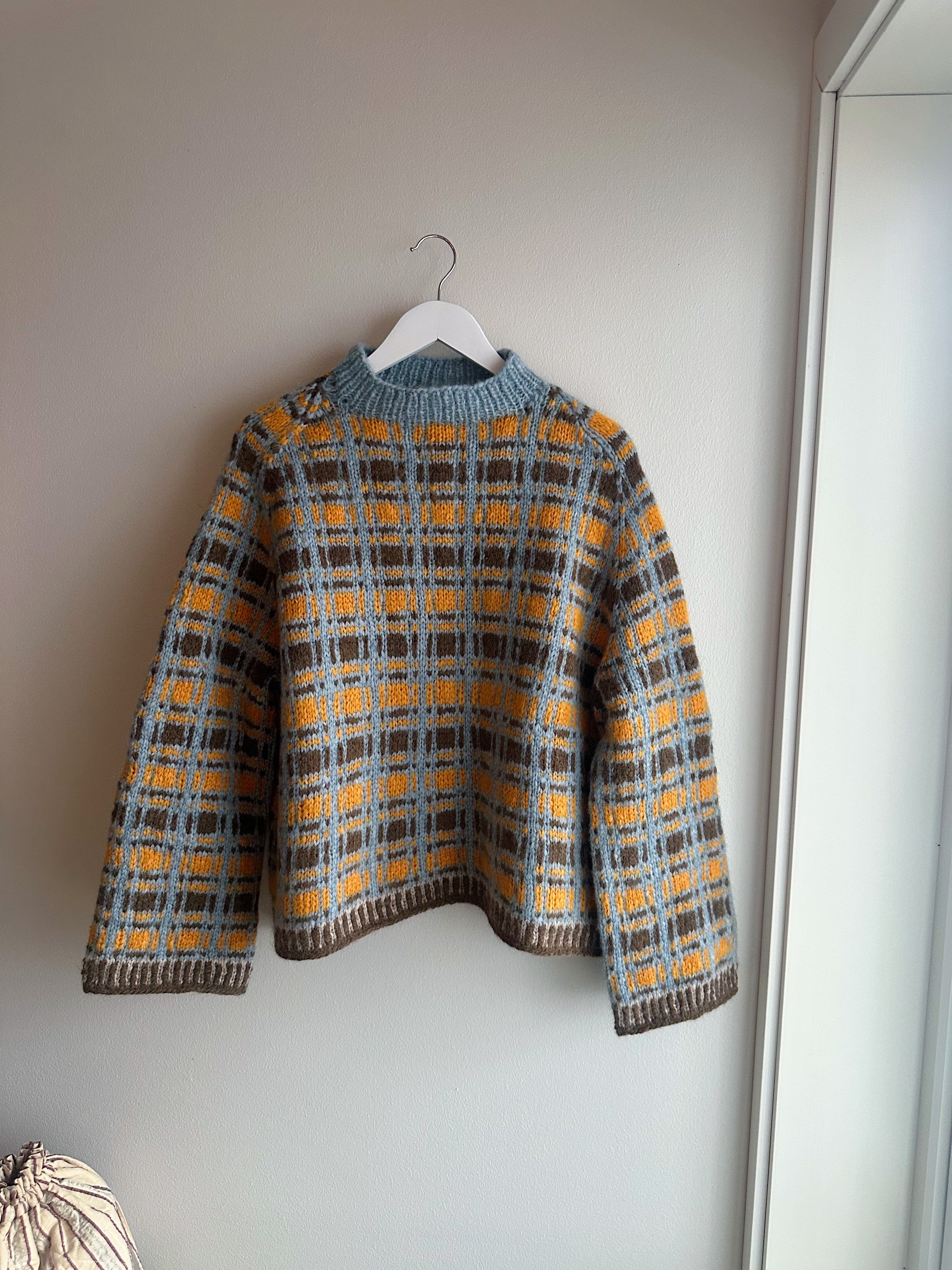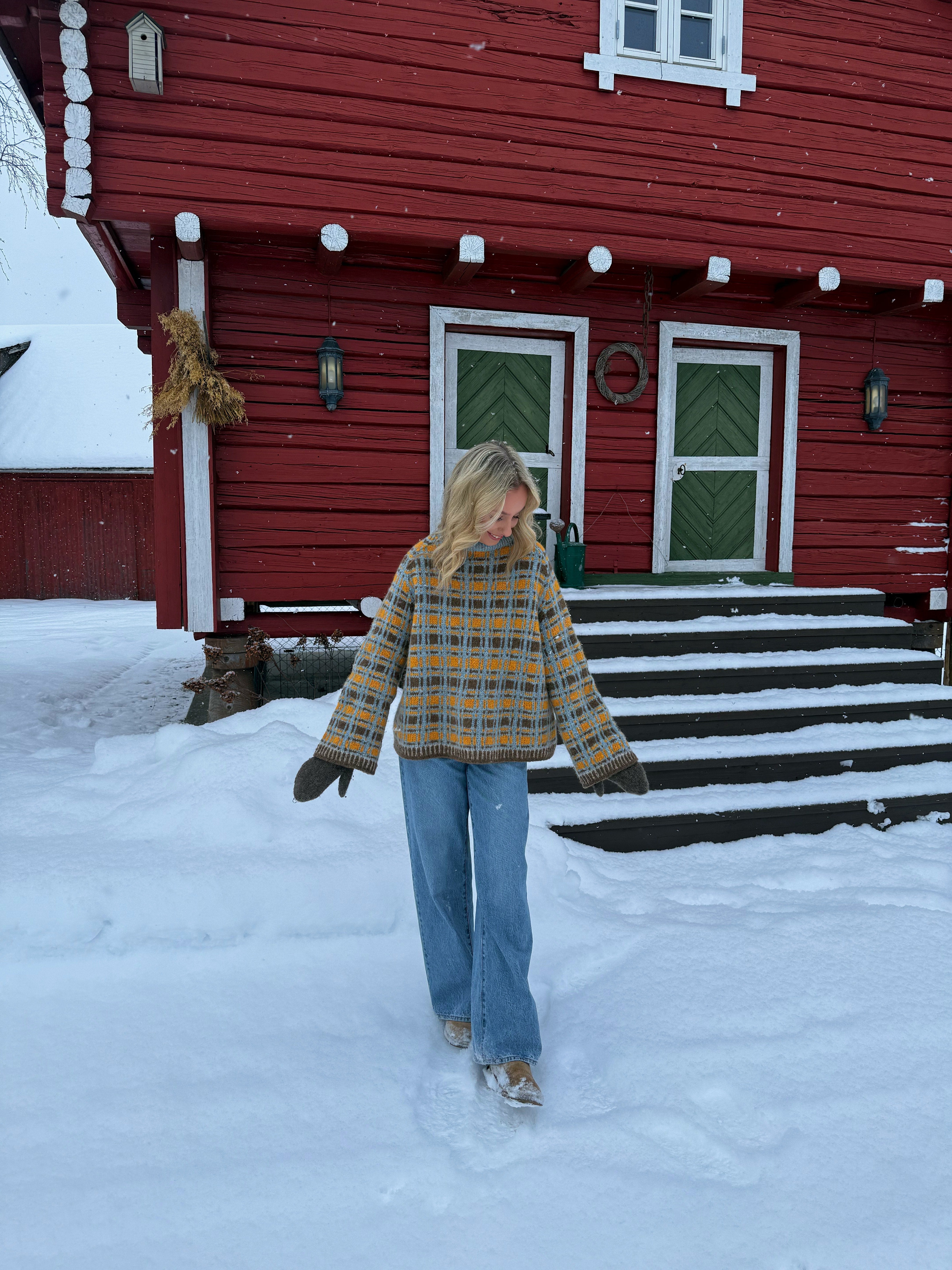 Gran means Norway Spruce and is a knitted sweater with a boxy fit. The sweater has a simple and repetitive pattern, making it a perfect project for those who have less experience with colorwork. This is the perfect chunky knit for colder days as it is robust and warm for outdoor use and comfy for indoor use.
