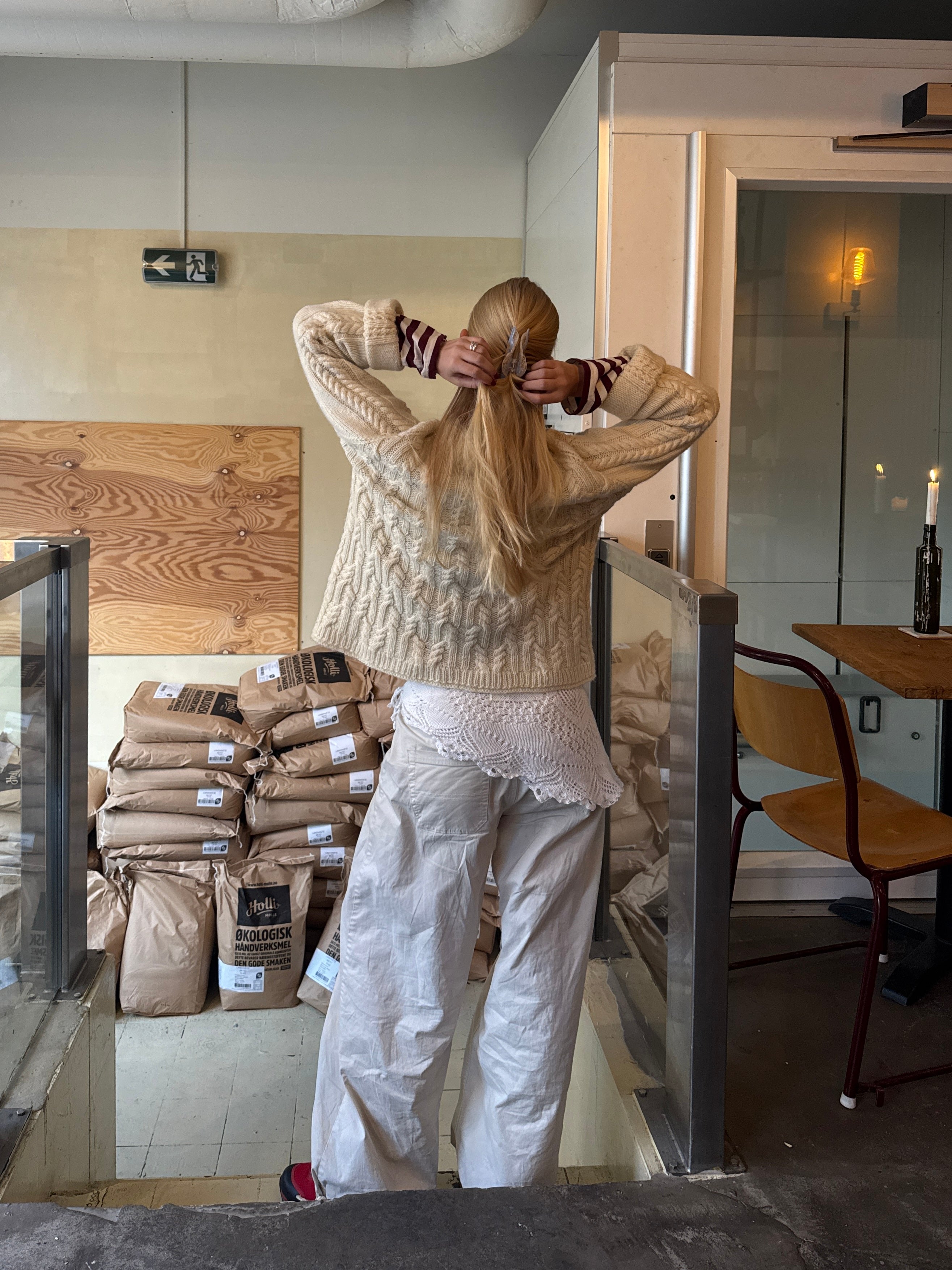Lilje means Lilly and is a lightweight cable-knit sweater with a raised neckline. The sweater has a slimmer fit and is knitted in Spinnvill, made from 100% Norwegian lambswool. A classic design that will never go out of style!