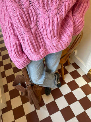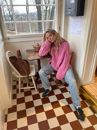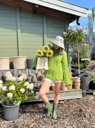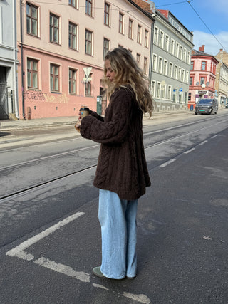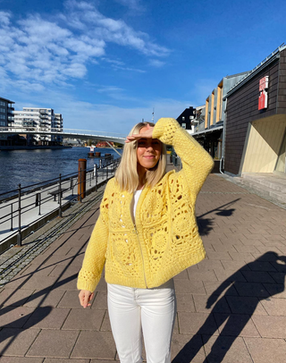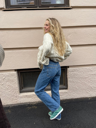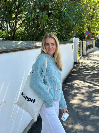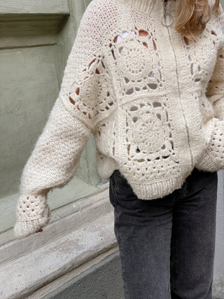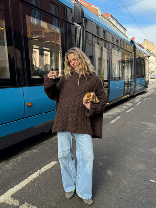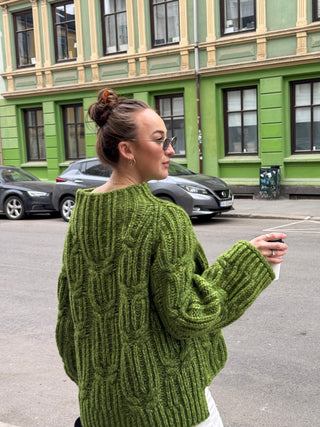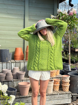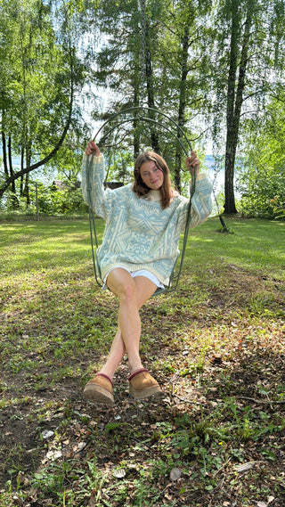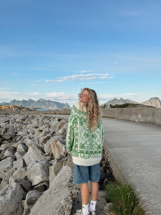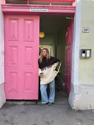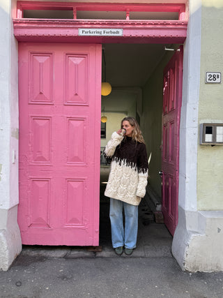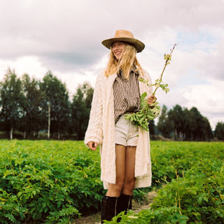 Egenskapene til norsk ull gir bærekraftige, slitesterke plagg som føles myke mot huden. Plaggene er strikket med inspirasjon fra sauens naturlige farger - hvit og brun, i Myk norsk lamull 🐑