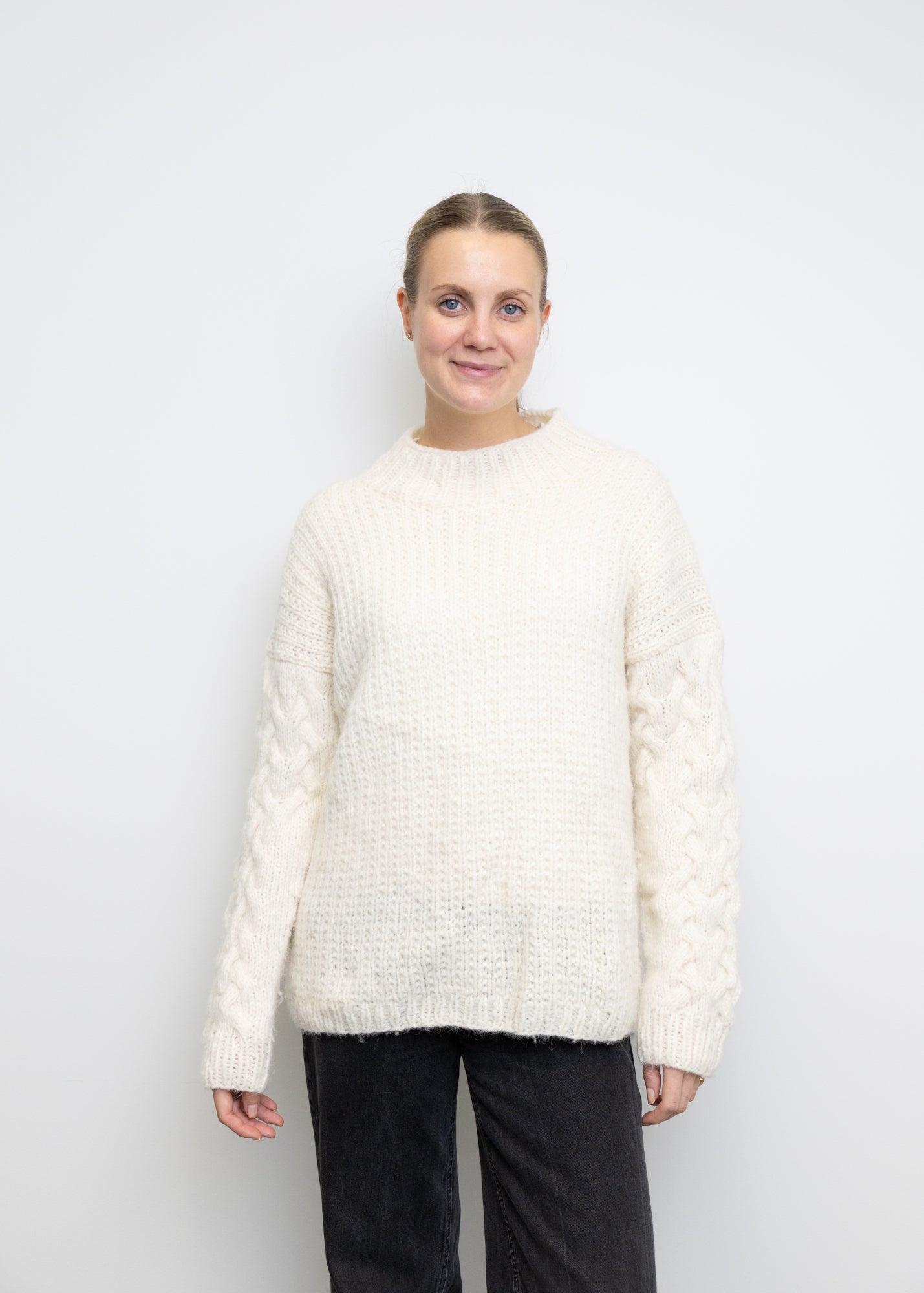 Denne genseren er fra en gammel kolleksjon. Genseren er strikket i Myk Alpakka. Denne genseren er strikket av Dorthe Skappel.