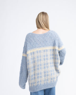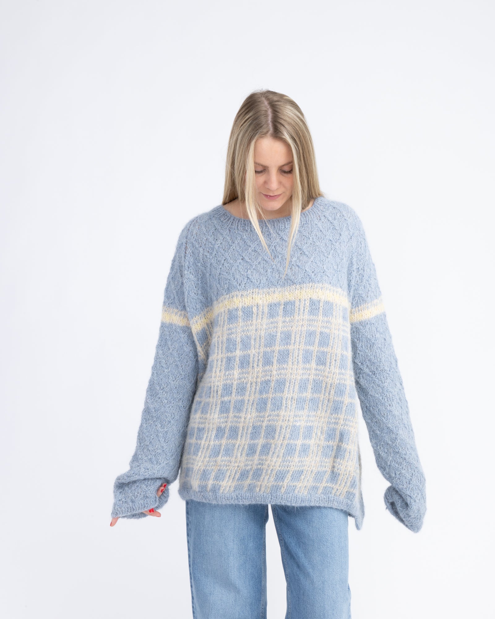 Denne genseren er fra en gammel kolleksjon. Genseren er strikket i Suri Alpakka.