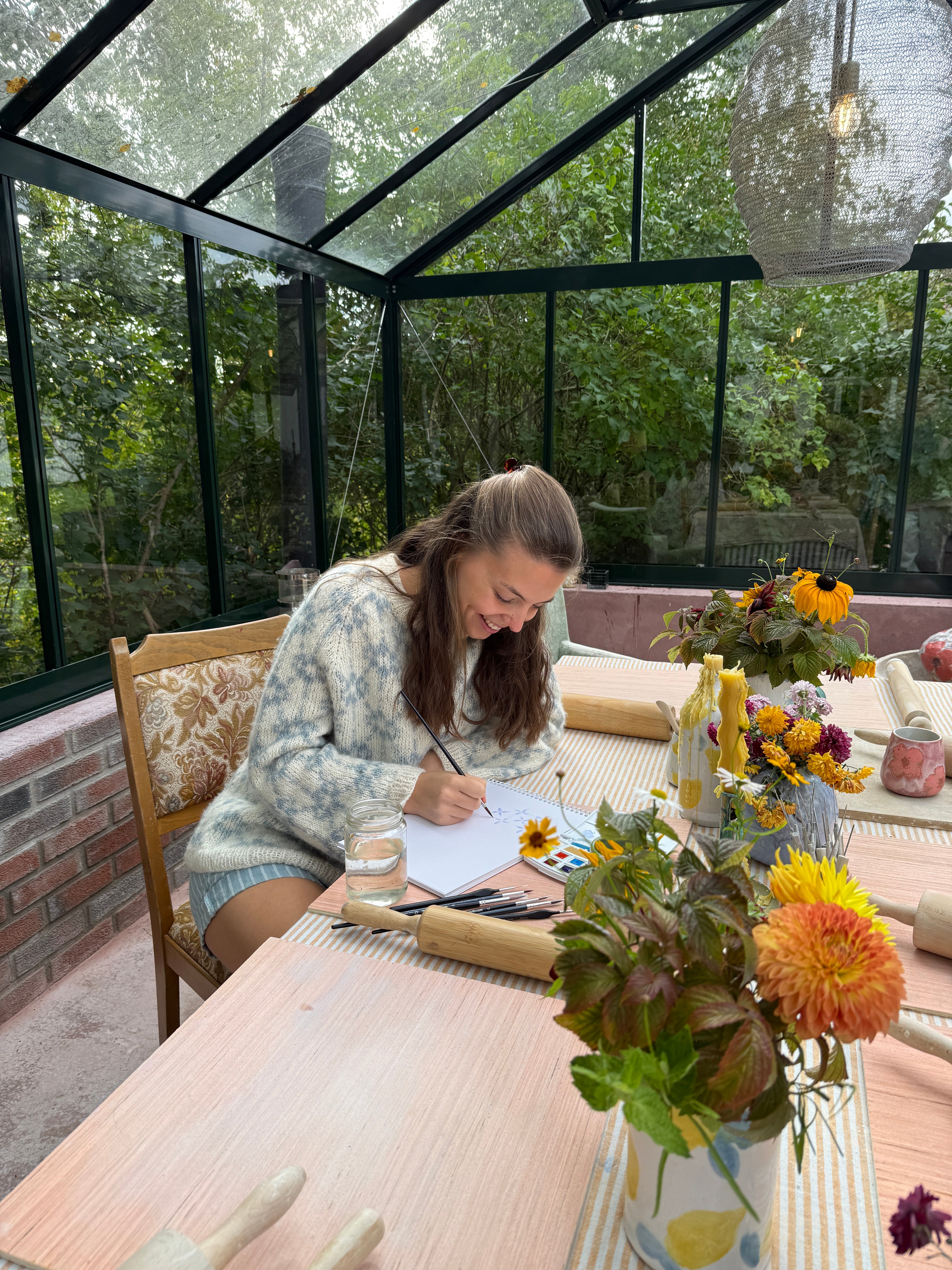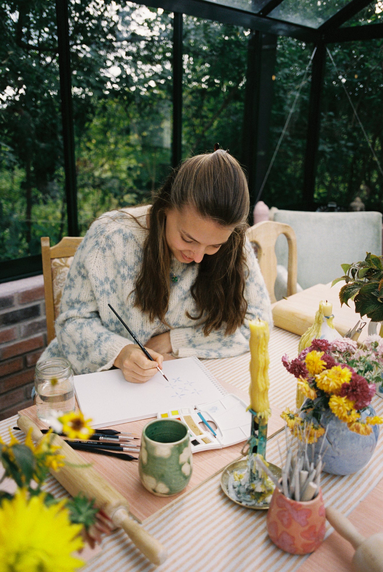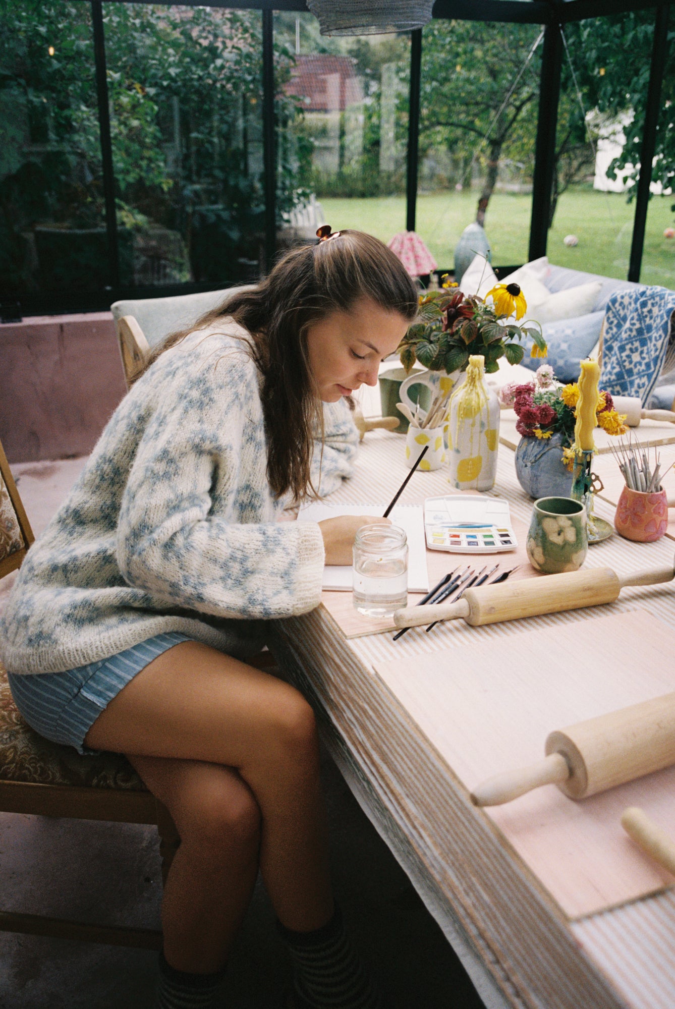 Flora er en luftig mønstret genser. Mønsteret er inspirert av det sarte og vakre i klassisk porselen. Genseren har en oversized passform som gjør den perfekt til kjøligere sommerdager og kvelder som nytes ute.