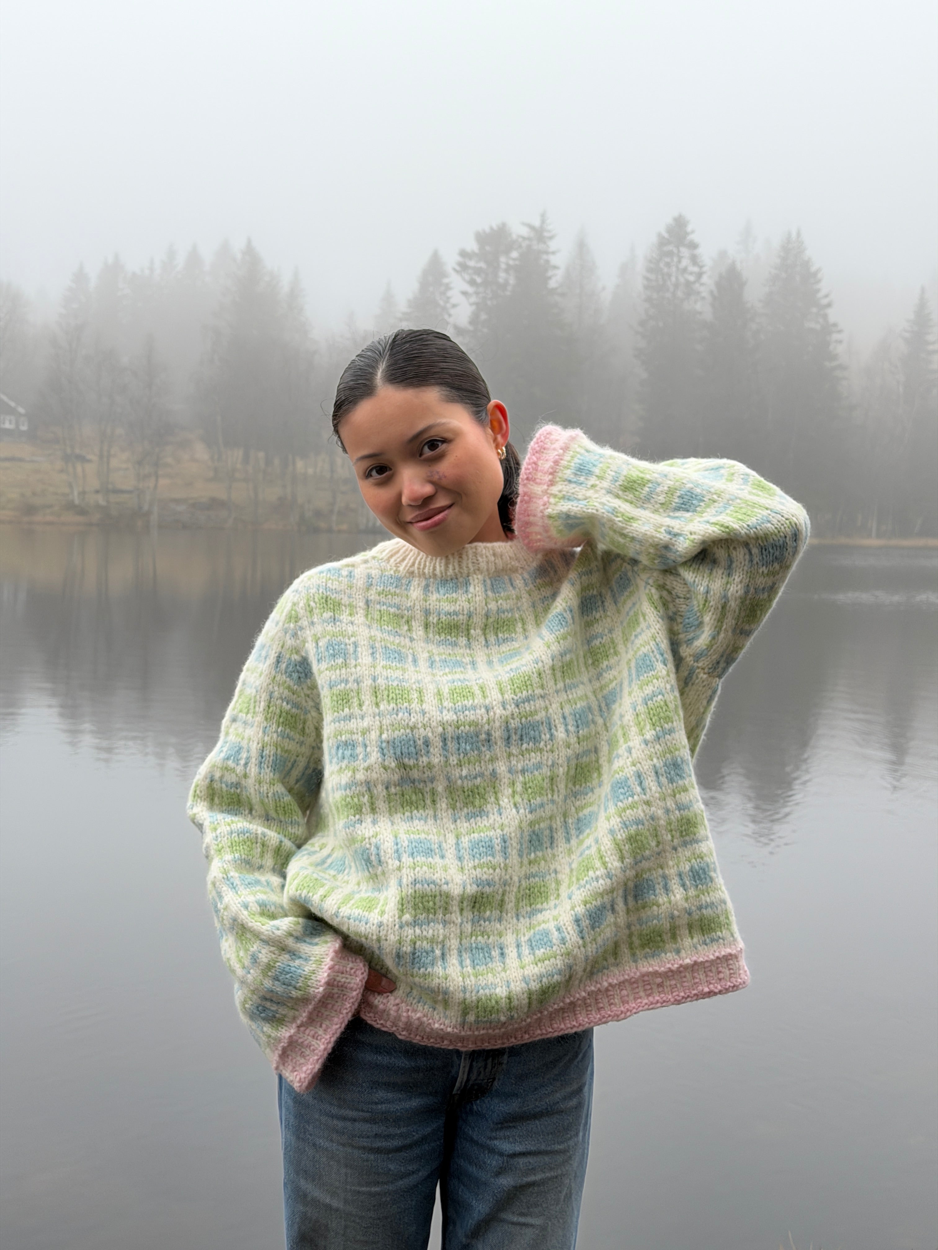 Gran er en strikkegenser med en bred passform. Genseren har et enkelt og repetetivt mønster, som gjør det til et perfekt prosjekt for de som ønsker seg å lære å strikke mønsterstrikk. Dette er den perfekte chunky genseren for kaldere dager ettersom den er robust og varm for utendørsbruk og lun og komfortable for innendørsbruk.