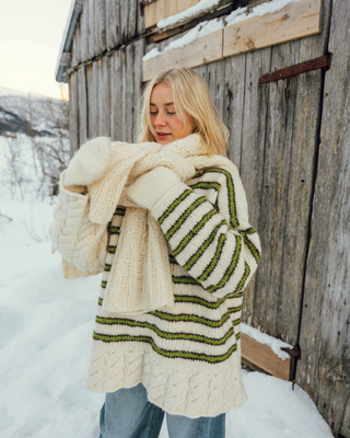 *Genseren er avbildet med fargen x031 Gressgrønn, men er erstattet med x030 Safirgrønn i strikkepakken, grunnet lagerbeholdning.