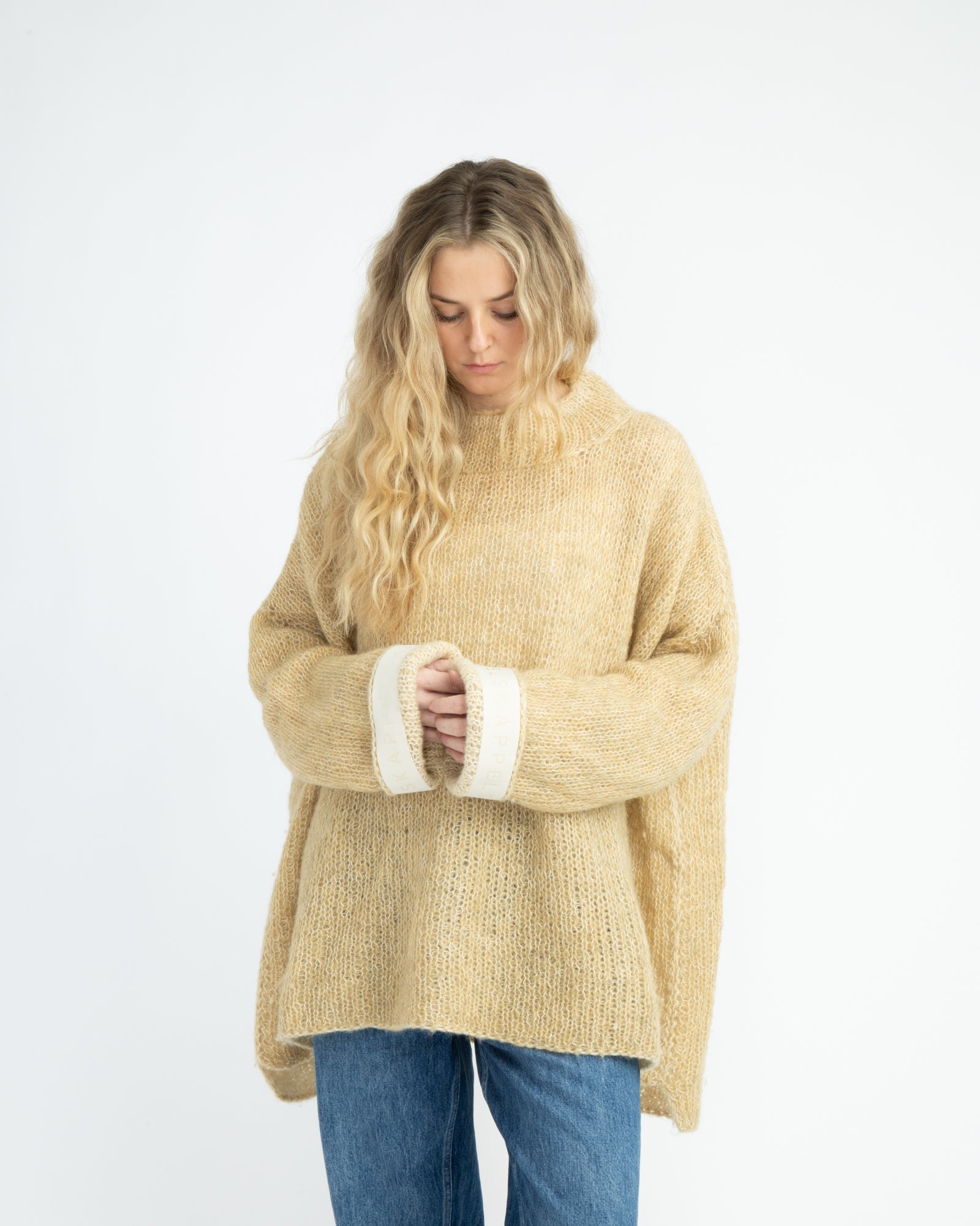 Dette er en håndstrikket genser laget i Skappel-garn.