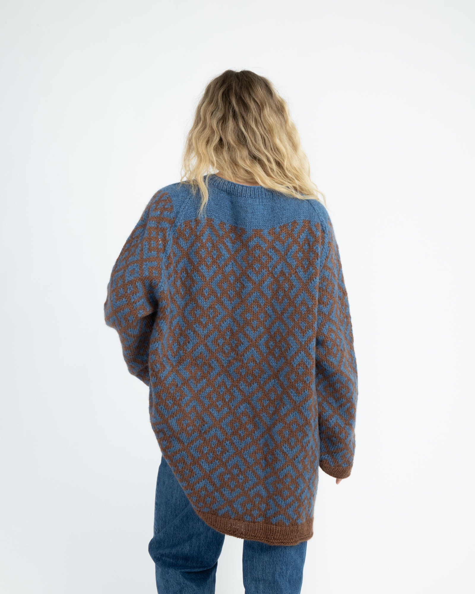 Dette er en håndstrikket genser laget i Skappel-garn.