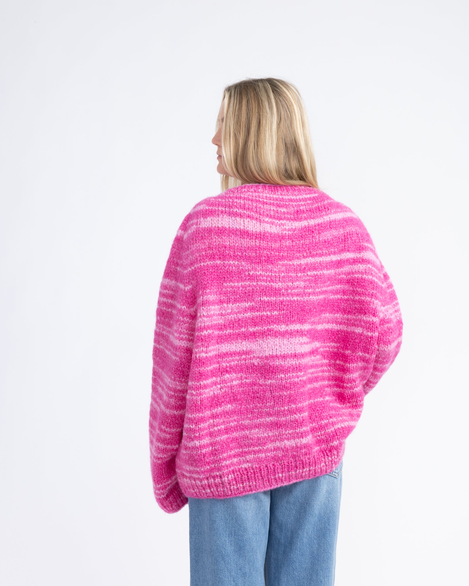 Denne genseren er strikket i et testgarn for fargeeffekten. Genseren er strikket i Myk Norsk Lamull. Denne genseren er strikket av Dorthe Skappel.