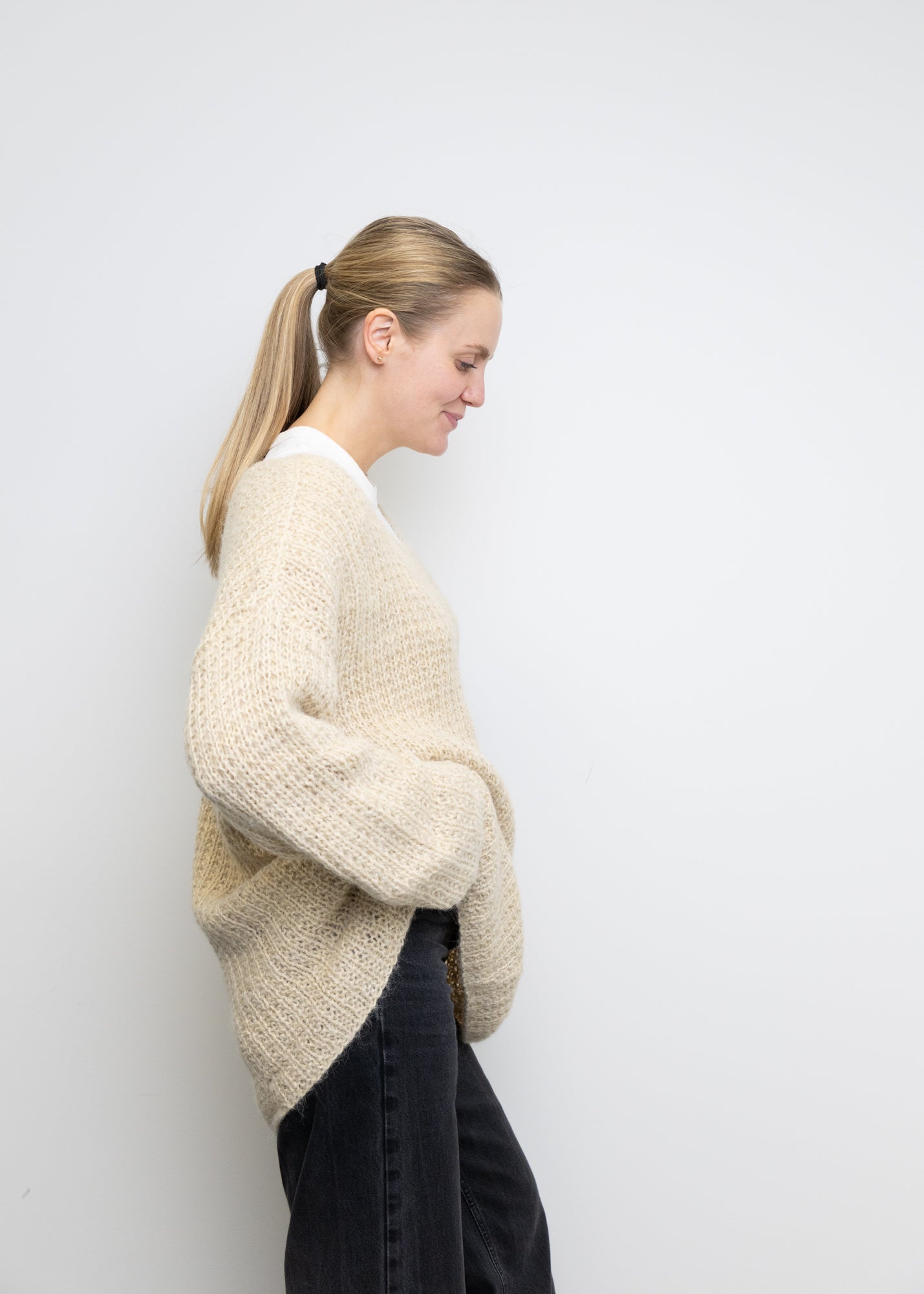 Denne genseren er fra en gammel kolleksjon. Genseren er strikket i Suri Alpakka. Denne genseren er strikket av Dorthe Skappel.