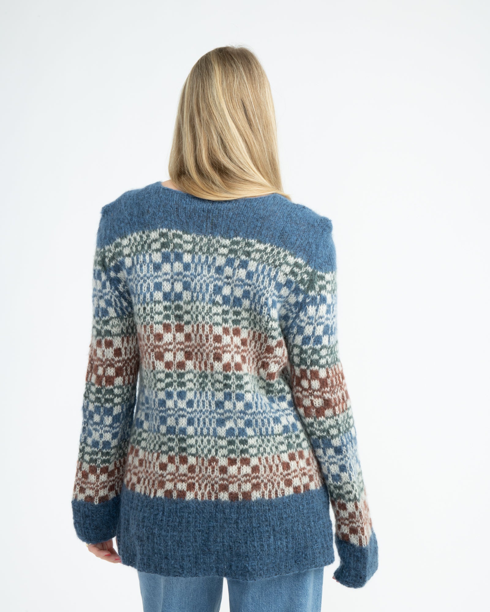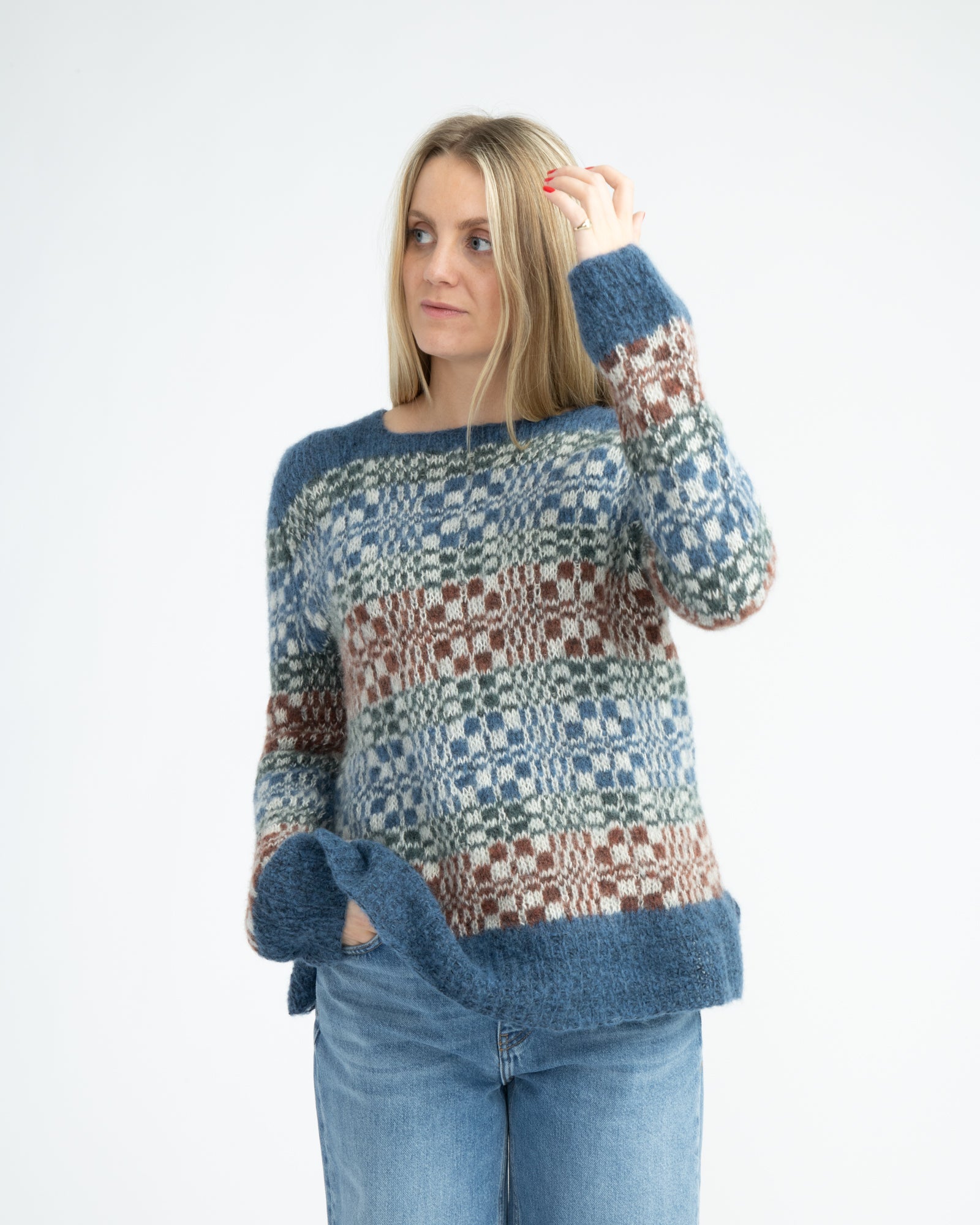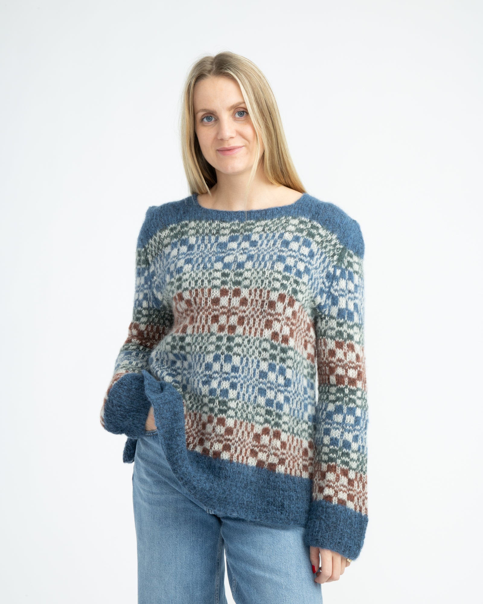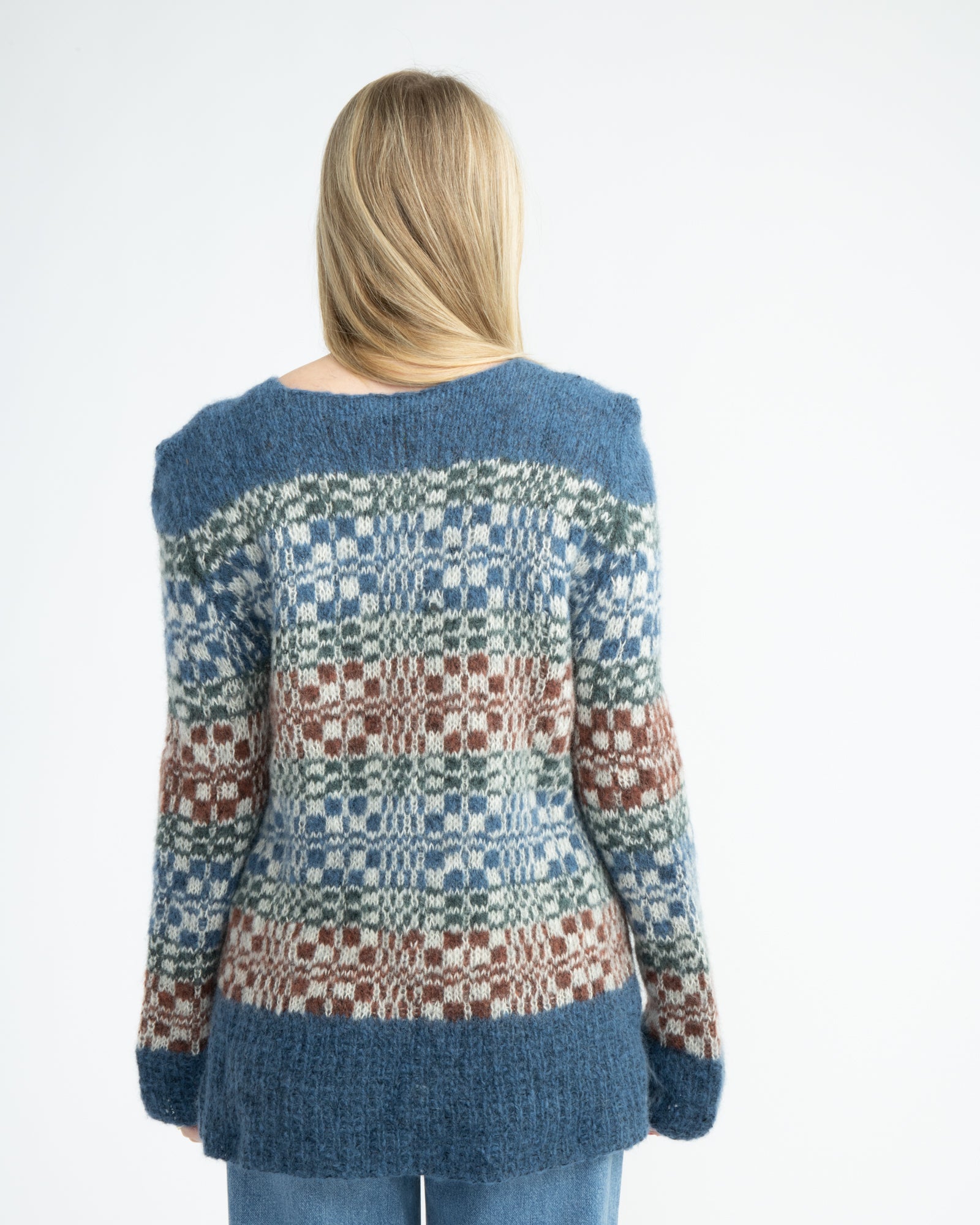 Denne genseren er fra en gammel kolleksjon. Genseren er strikket i Suri Norsk Lamull.